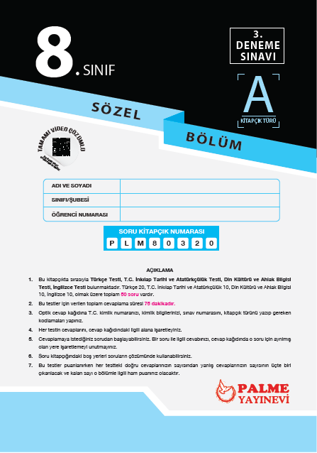 8. Sınıf 3. Deneme Sınavı A Kitapçığı