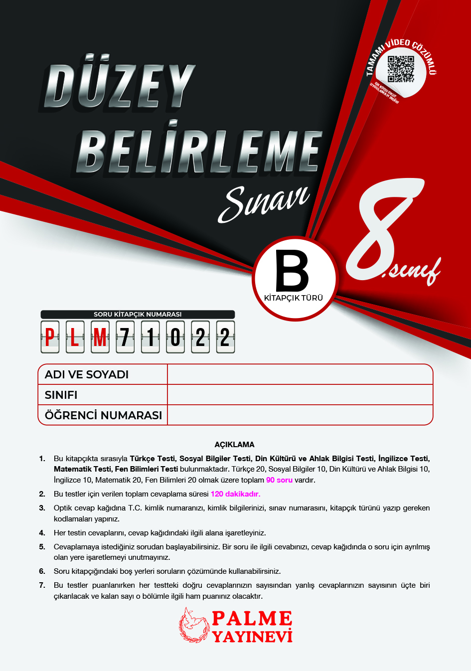 8. Sınıf Düzey Belirleme Sınavı B Kitapçığı