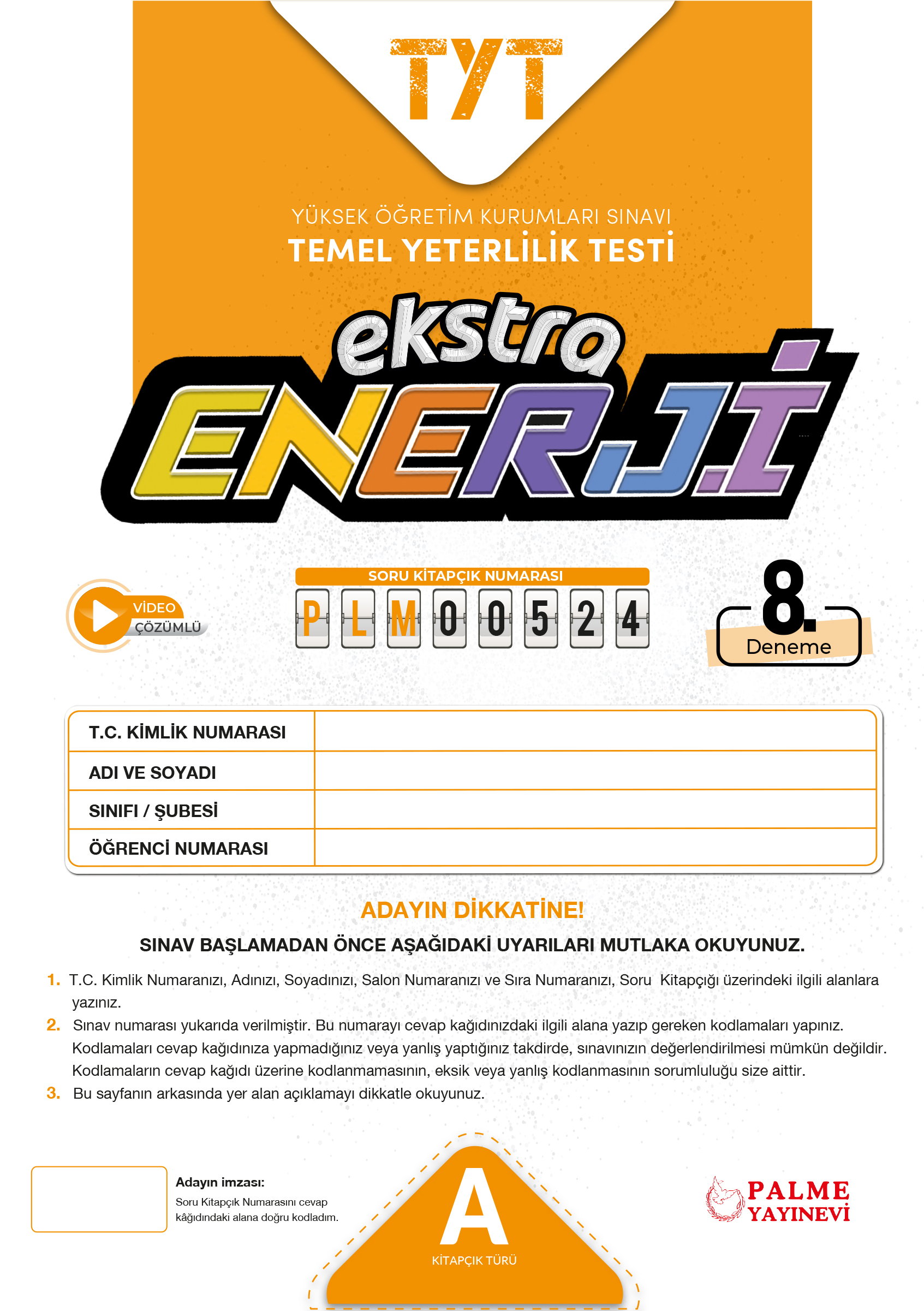 TYT ENERJI EKSTRA SERISI-8 A KITAPCIGI
