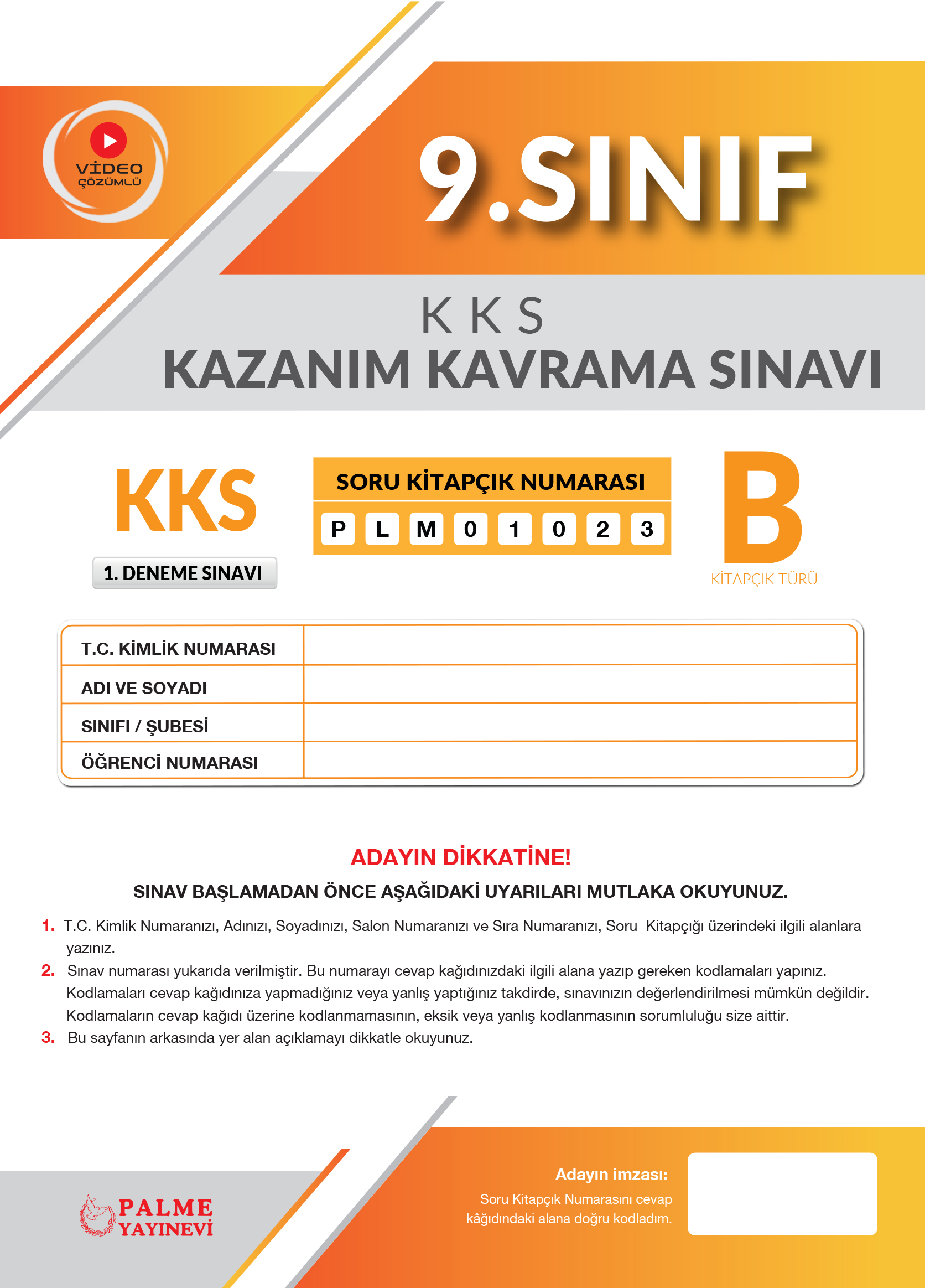9. Sınıf 1. Deneme KKS B Kitapçığı*