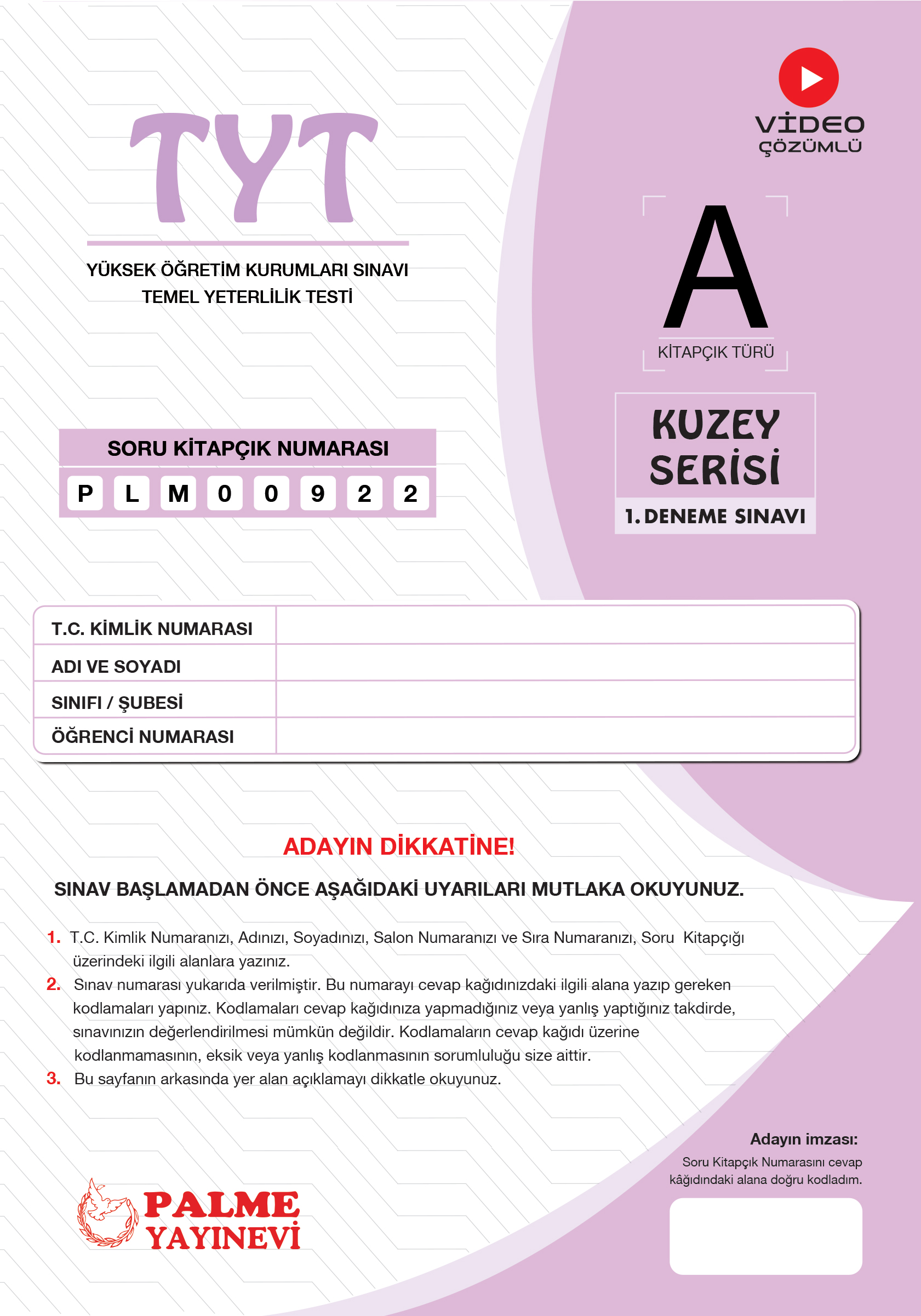 TYT Kuzey Serisi 1. Deneme Sınavı A Kitapçığı*
