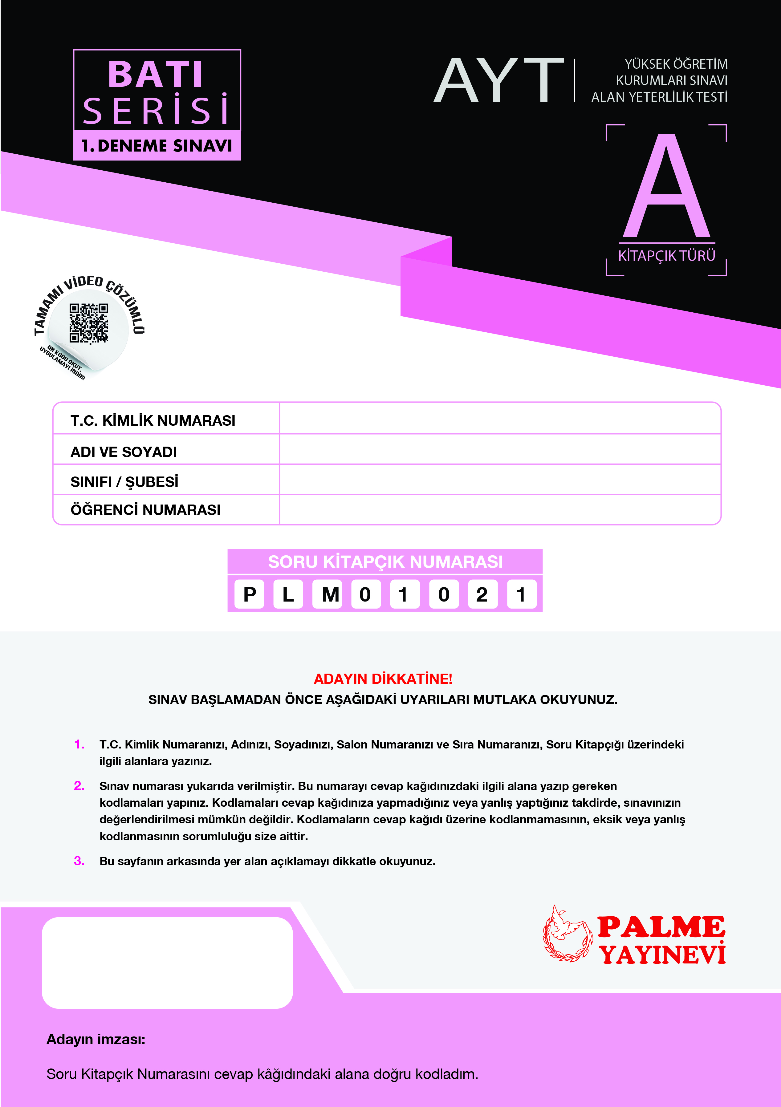 AYT Batı Serisi 1. Deneme Sınavı A Kitapçığı
