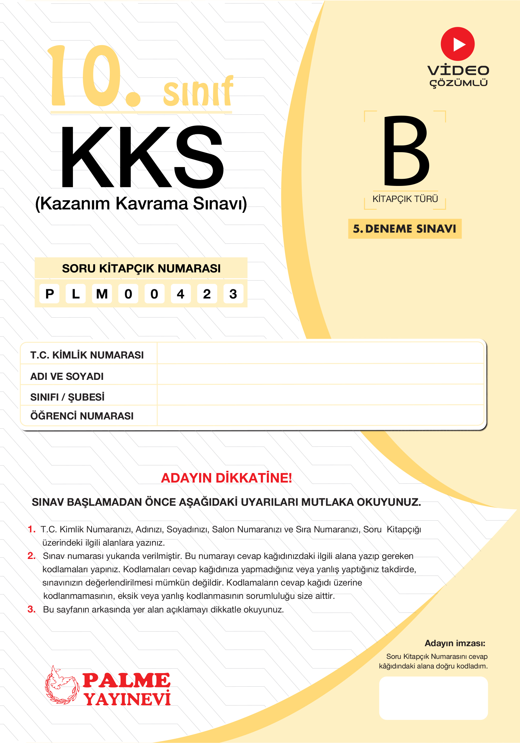 10. Sınıf 5.Deneme KKS B Kitapçığı