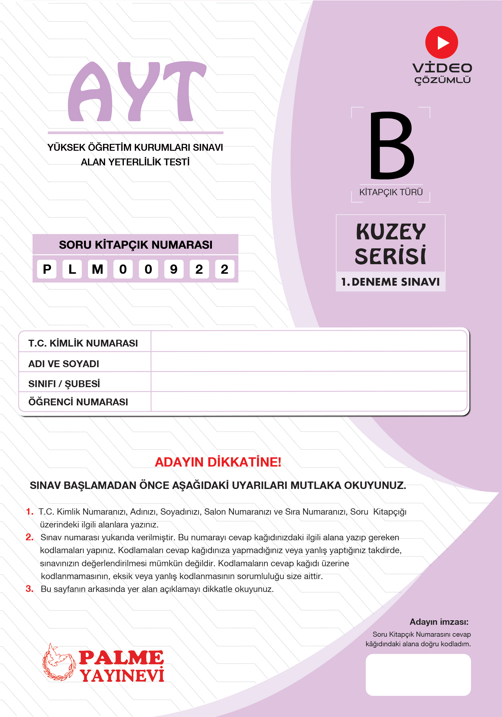 AYT Kuzey Serisi 1. Deneme Sınavı A Kitapçığı*