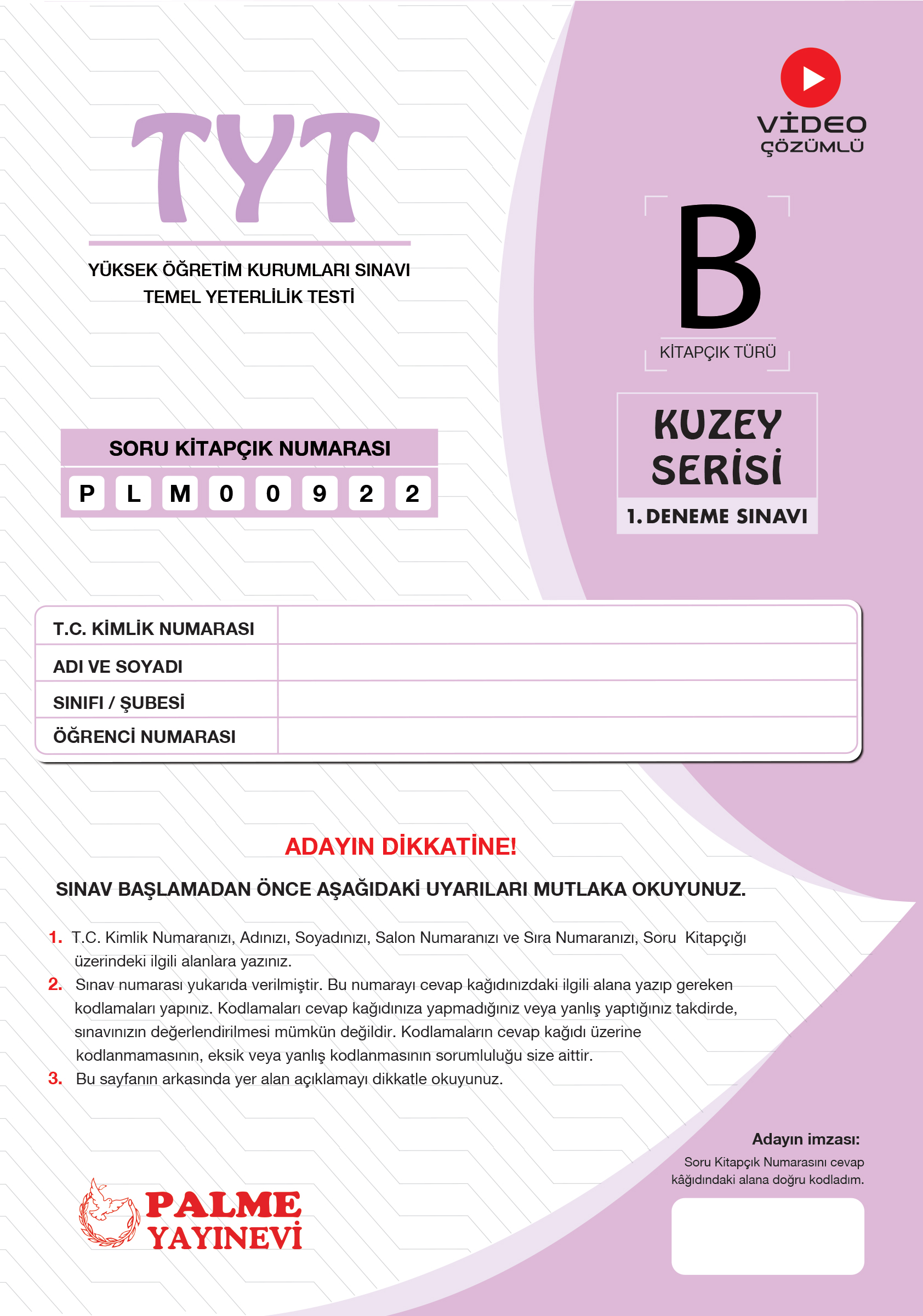 TYT Kuzey Serisi 1. Deneme Sınavı B Kitapçığı*