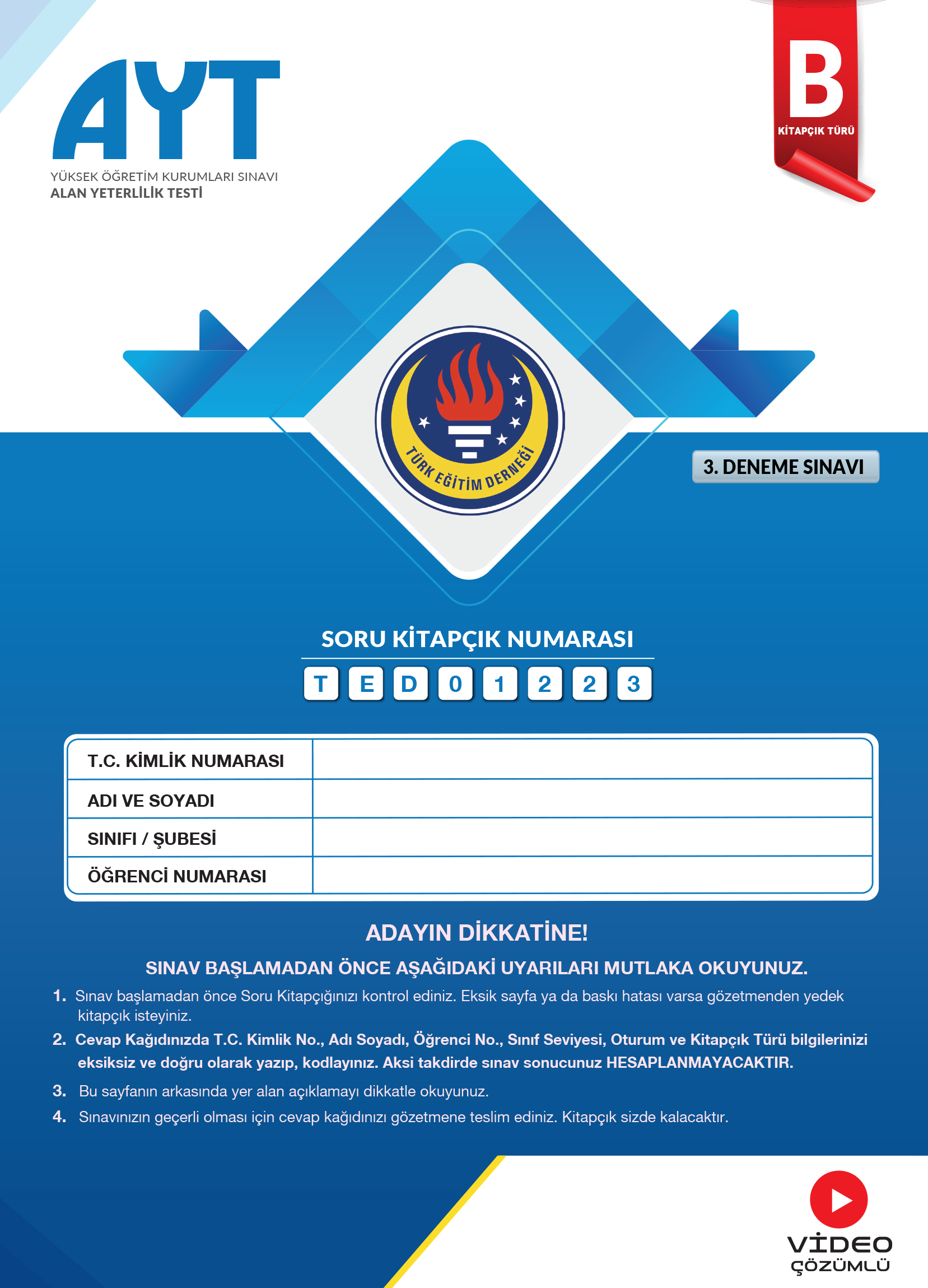 Türk Eğitim Derneği AYT Kurumsal Deneme 3-B Kitapçığı