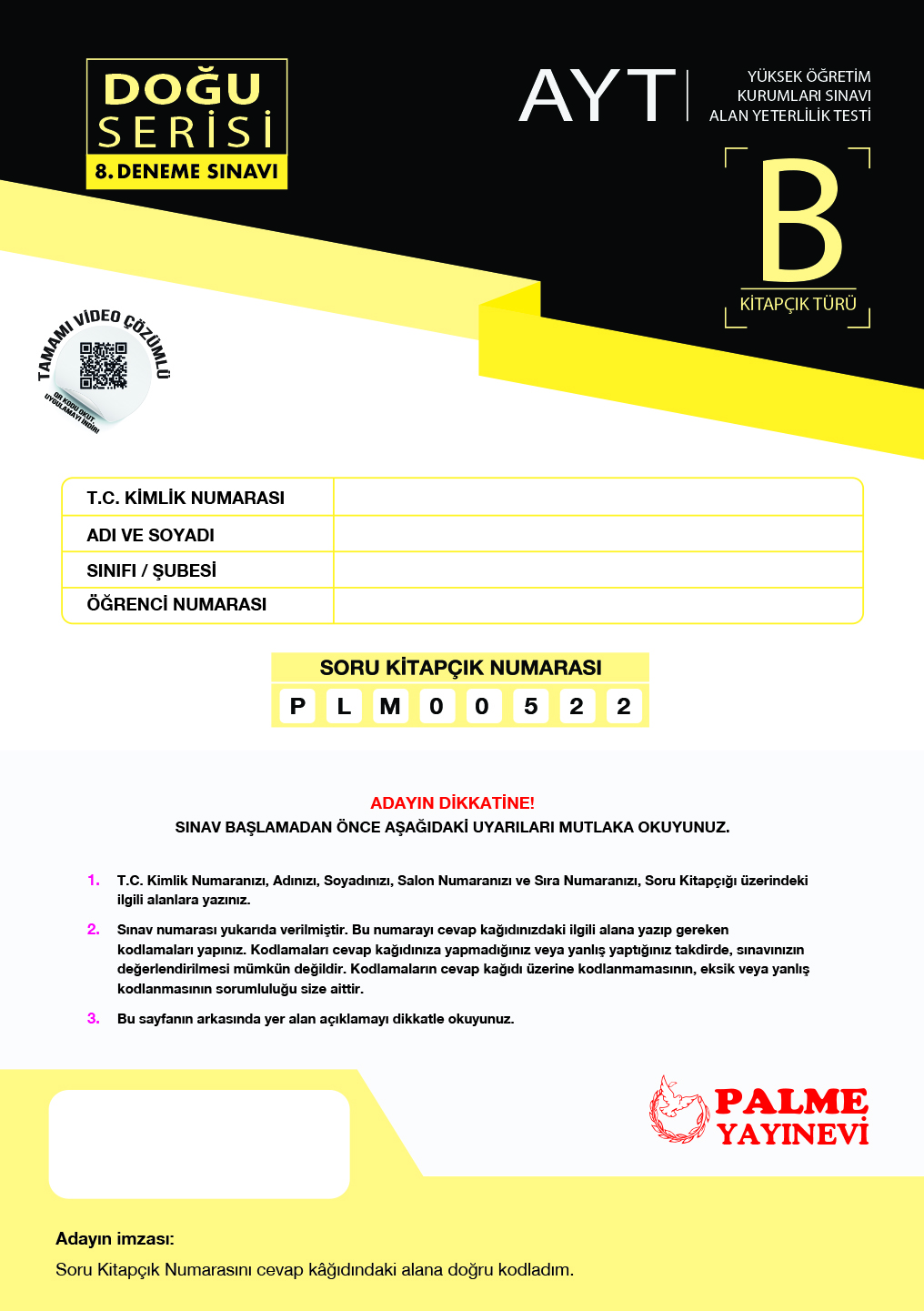 AYT Doğu Serisi 8. Deneme Sınavı B Kitapçığı