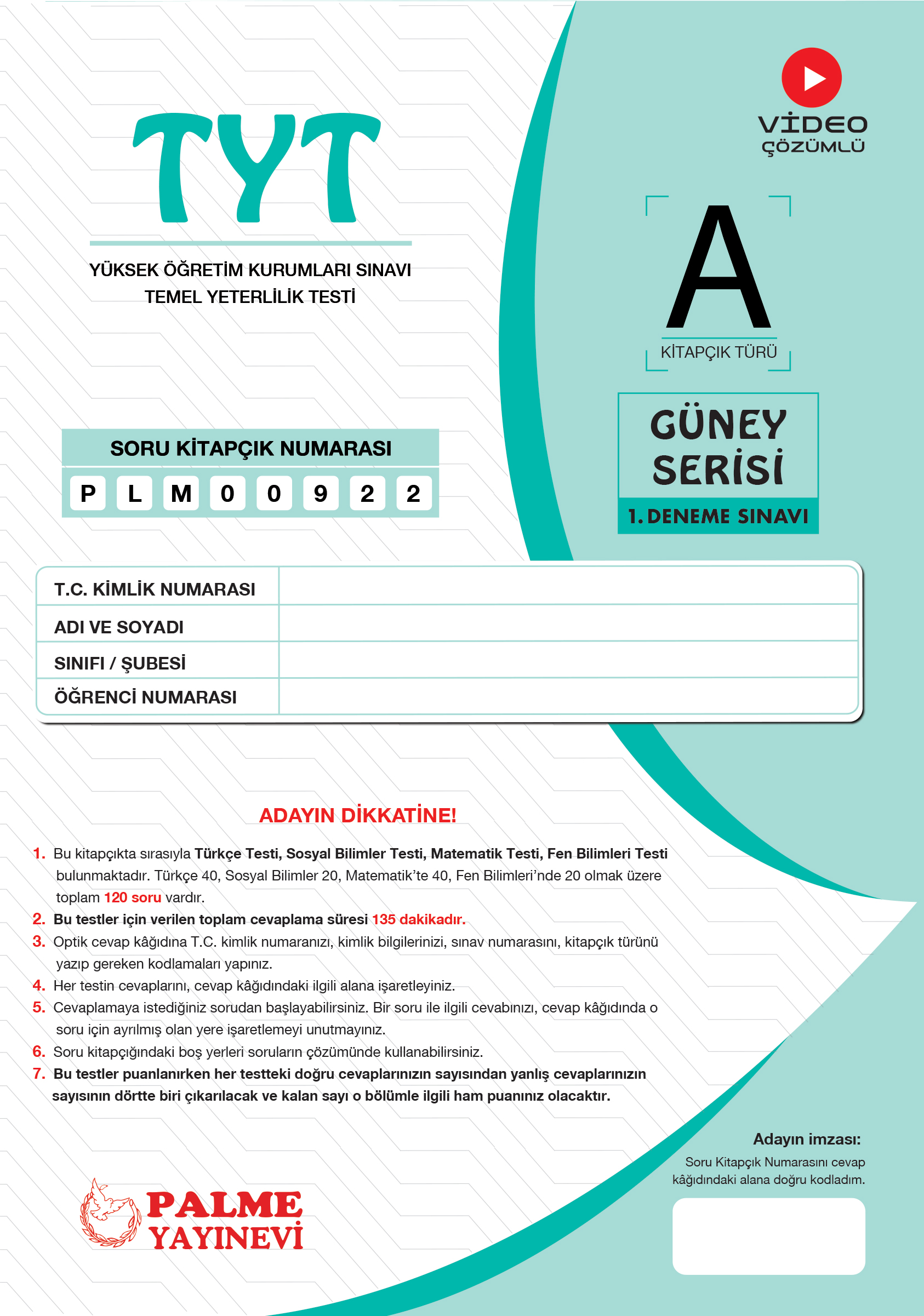 TYT Güney Serisi 1. Deneme Sınavı A Kitapçığı*